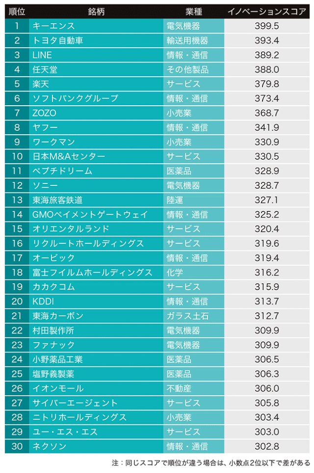 キーエンス トヨタ Lineがベスト3 イノベーション企業番付 日経クロストレンド