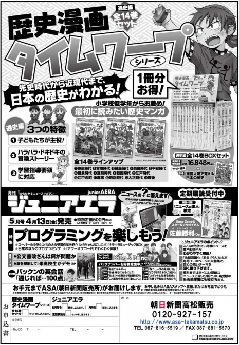 朝日新聞出版 歴史漫画タイムワープシリーズ全14巻セット ジュニアエラ5月号 トピックス Asa 朝日新聞 高松販売株式会社 香川県高松市