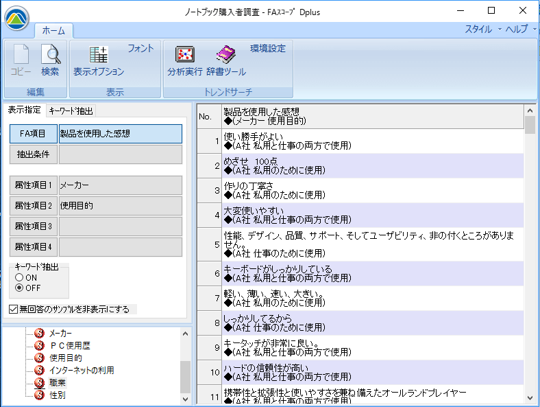 1変量から多変量までの分析に対応 アンケート集計ソフト秀吉dplus