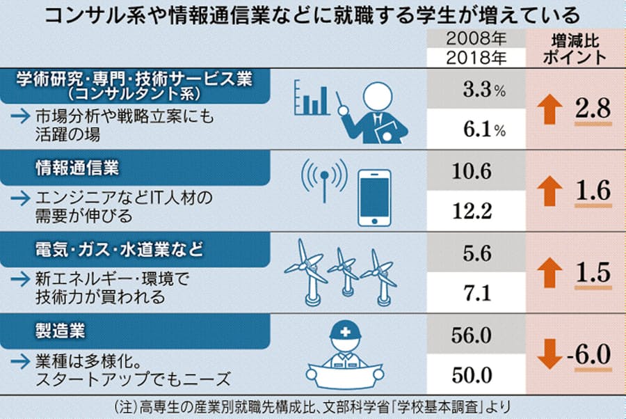 製造業だけじゃない 高専生の就職先ランキング 日本経済新聞