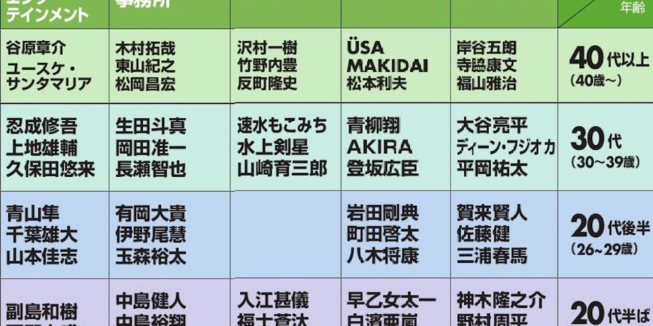 芸能プロ13社の男優比較 年齢別 次のエースは誰 アート レビュー Nikkei Style
