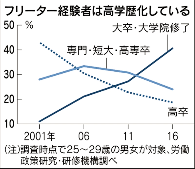 フリーターの高学歴化鮮明 代後半 大卒 院卒4割 日本経済新聞